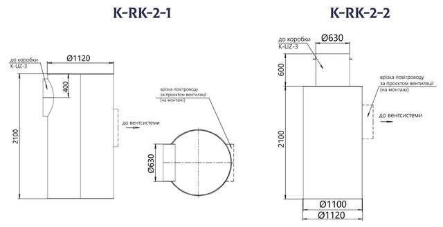 - встановлюються на вентиляційних системах за ходом вибухової хвилі на протизривних захисних секціях — K-UZS-1 в коробках К-UZ-3;
